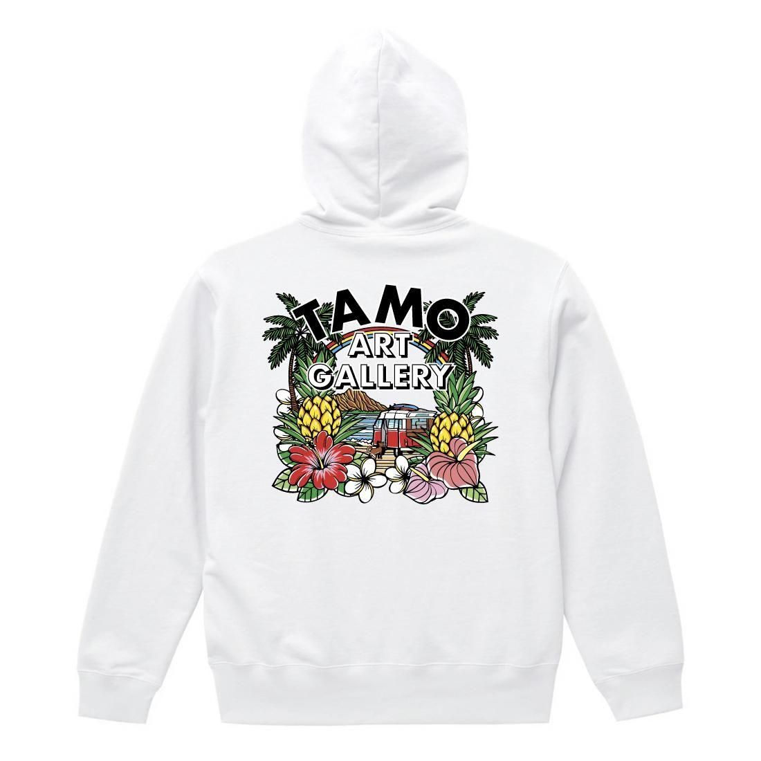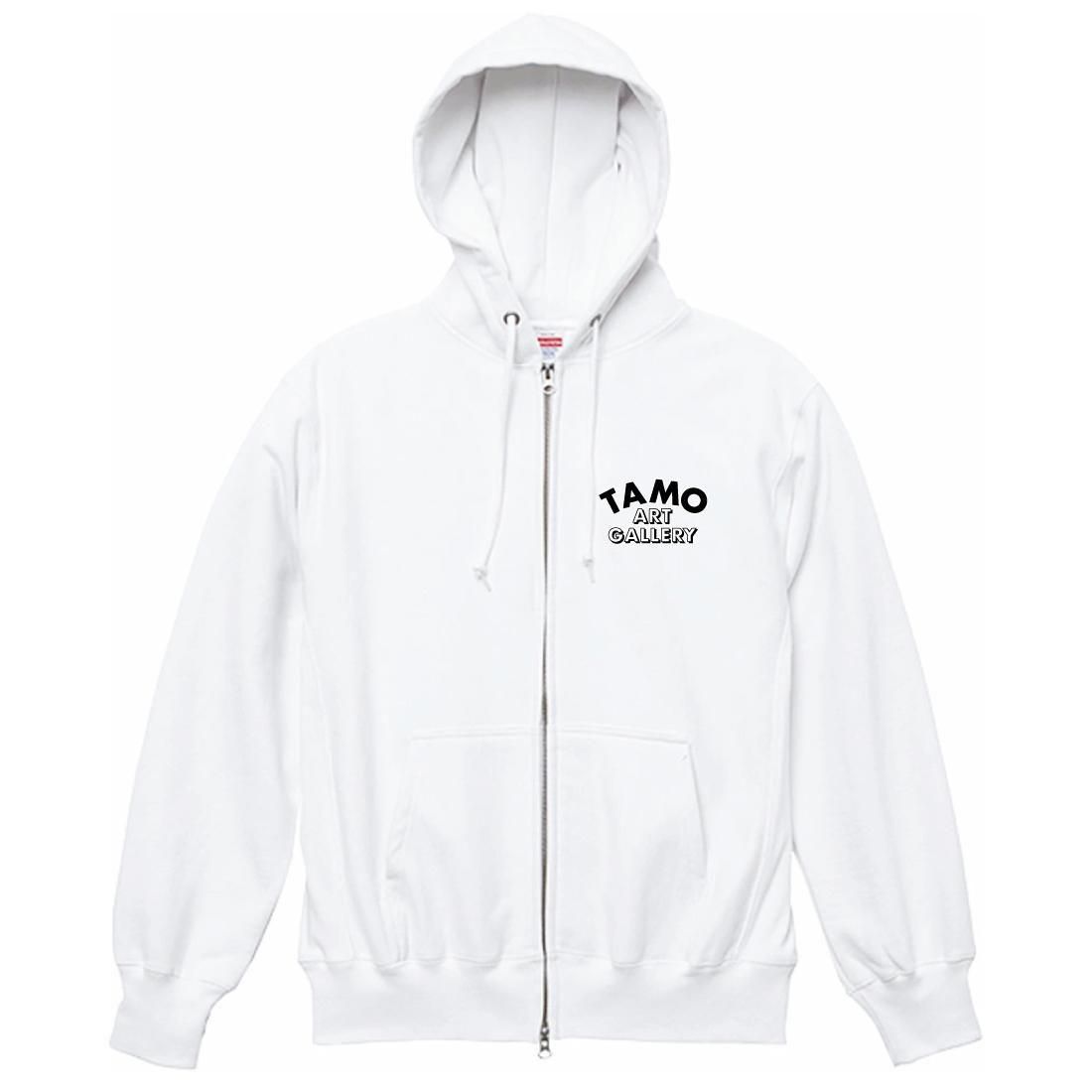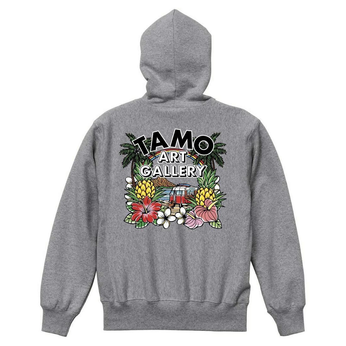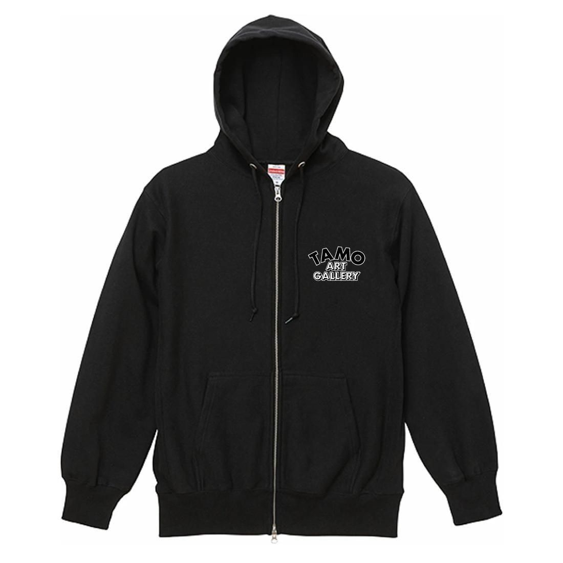グラフィックアーティストTAMOのデザインがプリントされ、12.0ozの厚め生地と裏起毛で十分な保温性があり、肌寒い日もふんわりあたたかなスウェットフルジップパーカー。